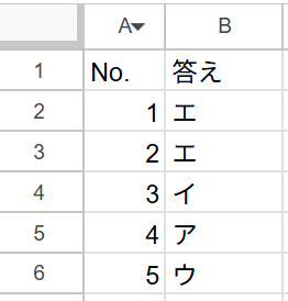 • 各行の「ア・イ・ウ・エ」を正解として認識